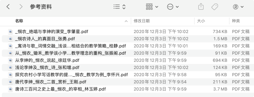 在安心要制作本节微课的时候,我就开始收集《悯农》的相关资料,从知网下载了一些论文。