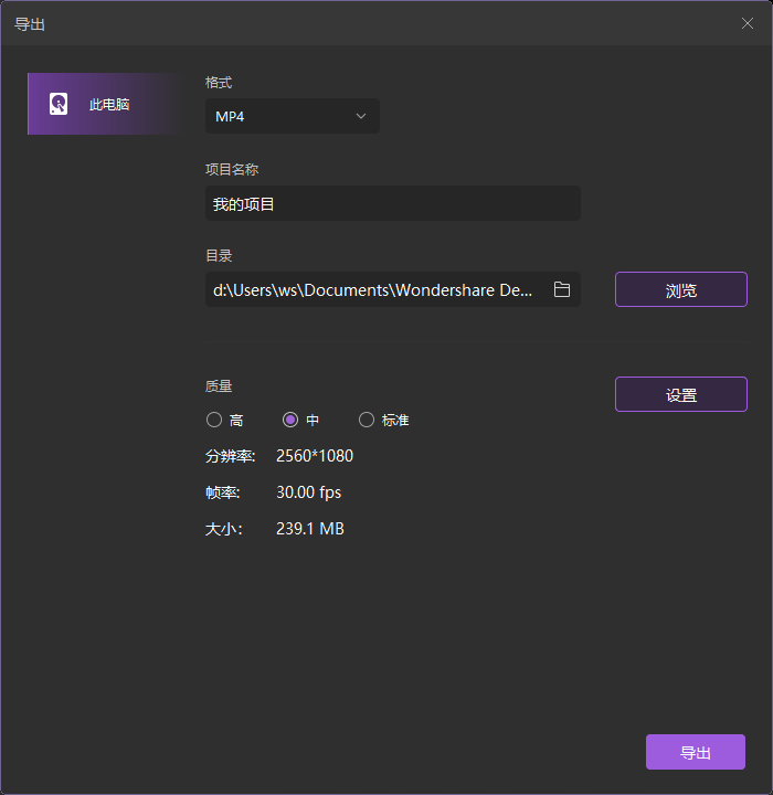 码率决定了导出后视频体积的清晰度和大小,建议设置为要求的最低或略高即可,避免文件过大传输麻烦。